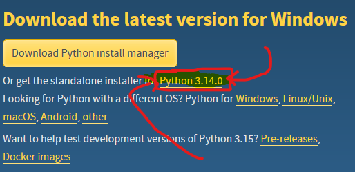 - Download at this link: https://www.python.org/downloads/
